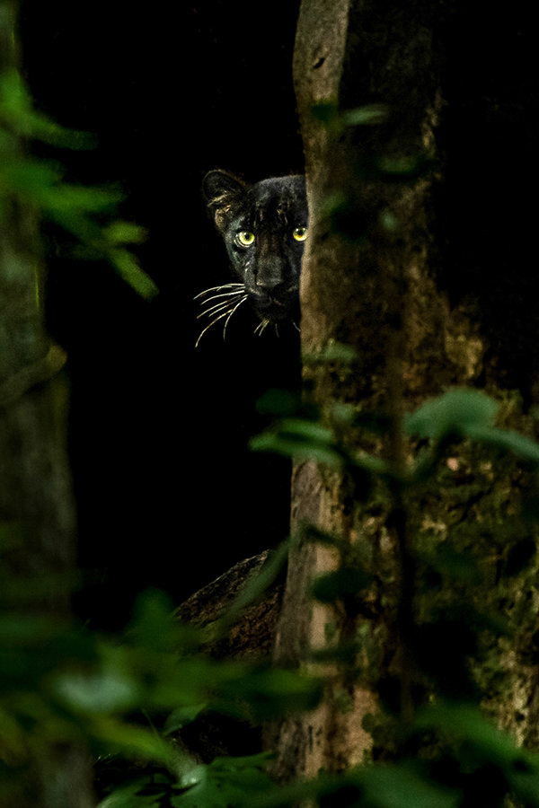 Black Panther camouflaging itself with surrounding darkness