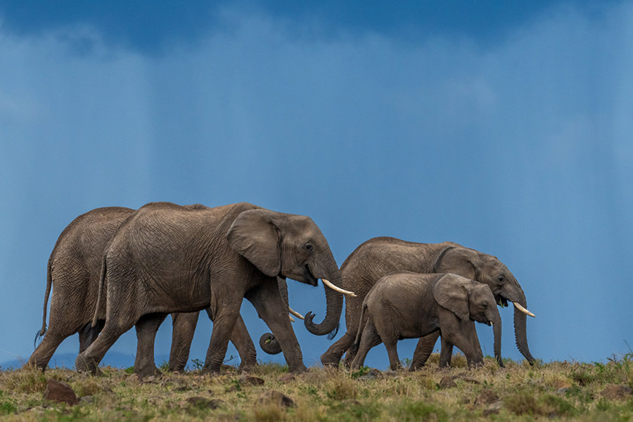 Elephant family on an evening walk